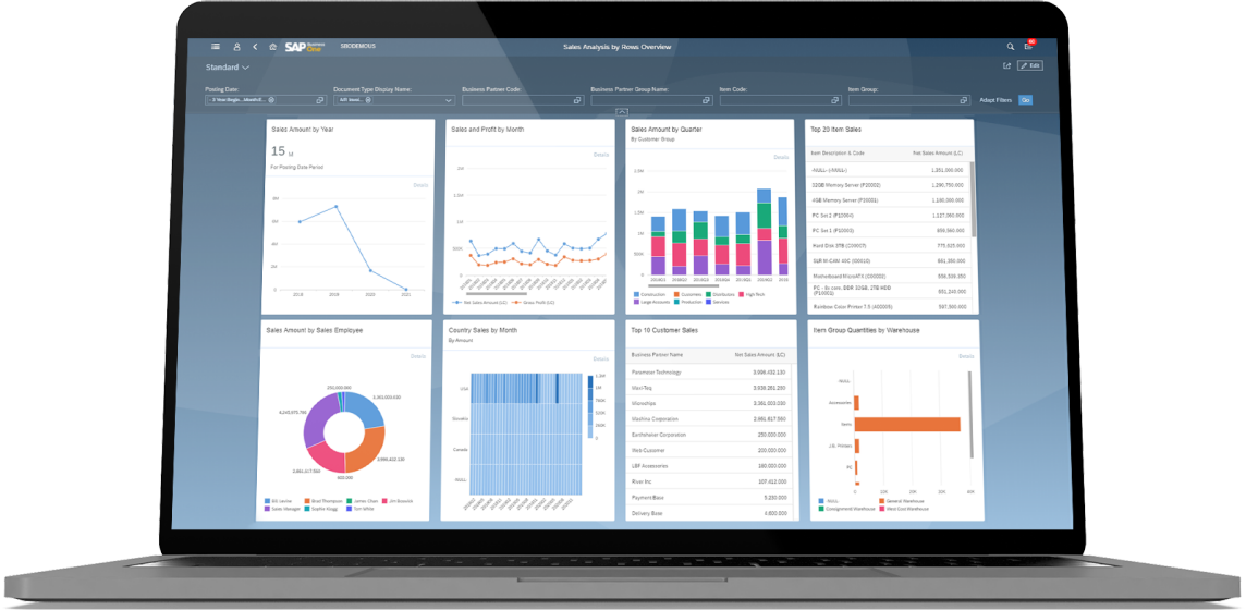 強大的數據可視化功能:利用 SAP Lumira(SAP B1 版)強大的可視化功能,優化報表,從而制定更明智的決策。